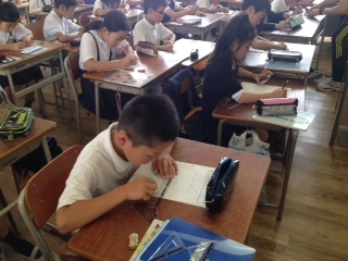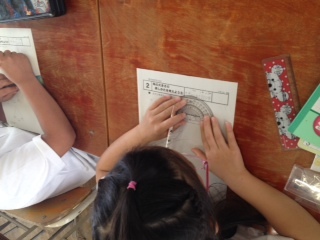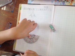 4年生が分度器を使って、三角形を書きました。