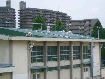 先週から体育館が雨漏りしています。今日(25日)から修理が始まりました。