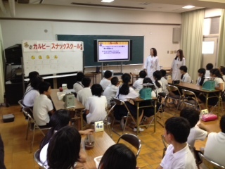 カルビー株式会社から、6年生と5年生が「食育」の授業として、「スナックスクール」をしてもらいました。子どもたちの大好きなスナック菓子ですが、くれぐれも食べ過ぎには注意しましょう、という内容でした。