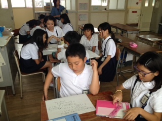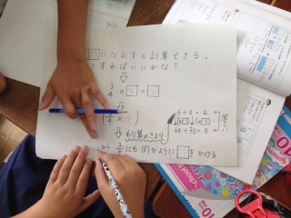 分数÷分数の計算です。難しい問題ですが、グループで話し合いをしながら解いていました。