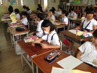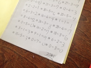 3年生の朝学習の様子です。プリントができたら手をあげます。先生が何分何秒と時間を読み上げます。みんな真剣です。