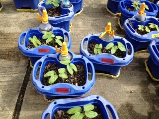1年生のあさがお、ひまわり、あじさいなどの植物です。雨を待っているようです。