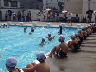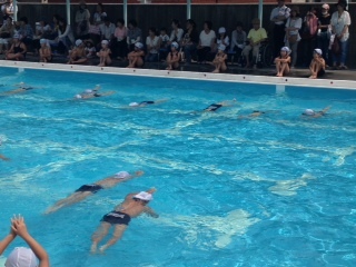 プールで水泳の授業でした。プールサイドの暑さ(熱さ)を体感いただきました。