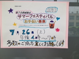 PTA主催の「サマーフェスティバル」のポスターです。ご協力よろしくお願いします。