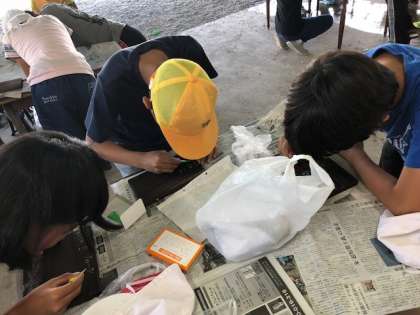 昨日磨いた焼き板に絵や文字を書きました。林間学習の記念となるすてきな焼き板が出来上がりました。