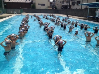 高学年のプール開放の様子です。96人の児童が参加しました。