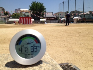 テントの準備とやぐらの準備が進んでいます。正午の気温をお知らせします。
