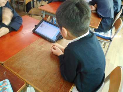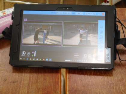 4年生がタブレットを活用した授業を行いました。体育科「鉄棒運動」の「逆上がり」の動画を撮影したものを、マルチ画面を用いて比較し、違いを探しました。