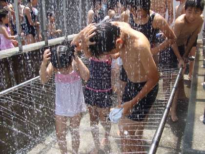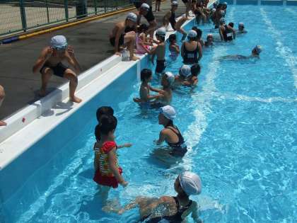 ゆりかご保育園の子どもたちが、6年生と一緒にプールにはいりました。