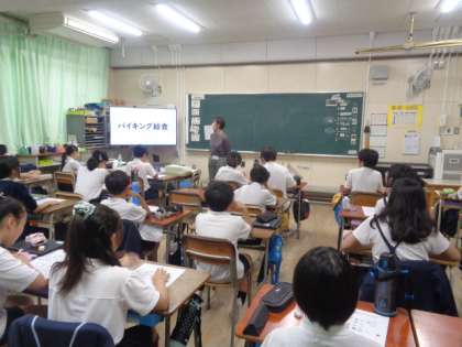 6年生の子どもたちは、普段自分が食べているものの栄養と、そのバランスについて考えました。バイキング給食と銘打ち、はじめに自分たちで献立の組み合わせを作りました。食べたいものだけ優先的にとってしまうと、栄養のバランスが崩れて健康に影響が出ることを学び、そこからバランスのいい組み合わせについて考えました。この先自分で食べるものを選ぶ機会も増えていきます。今日のことを参考に、健康的な食事を意識してほしいです。