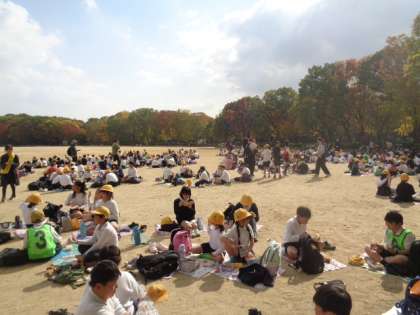 城東小学校の全学年で行うともだちオリエンテーリングを、大阪城公園でしました。天候も良く、暖かい中で活動することができました。友だちグループのリーダーを務める6年生は、グループのみんなにやさしく声をかけながら公園内を周りました。各ポイントでは色々なゲームが用意され、子どもたちは協力しながらゲームクリアを目指し、とても盛り上がっていました。たくさん活動したのでおなかも減り、グループで楽しくお弁当を食べました。子どもたち同士の協力のおかげで、思い出に残る楽しい1日になりました。