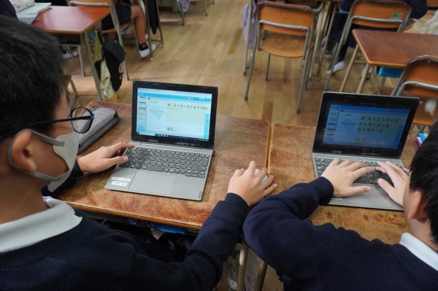 一人一台のPCを活用し、図形を分けたり組み合わせたりしながら、自分の考えを整理して表現する姿が見られました。