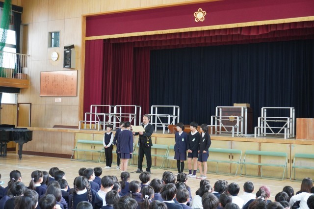 集会の後には、多方面で活躍する児童の表彰式も行いました。今回は、書写・絵画・珠算・体操・ミニバス・駅伝と、文化・スポーツ両面で多くの子どもたちが表彰状を手にしました。努力が形になった瞬間の、誇らしげな表情が印象的でした。