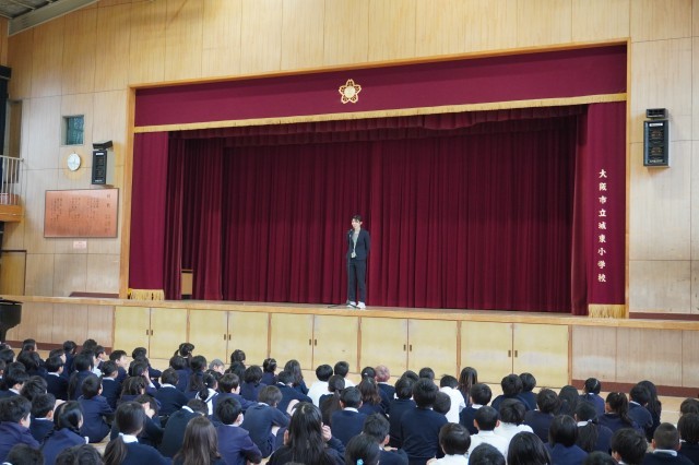 歌詞の一言一言を噛みしめるように歌う子供たちの歌声が講堂中に響き渡り、会場は大きな感謝と感動に包まれました。去りゆく先生方の目にも、子供たちの真っ直ぐな歌声が深く刻まれたことと思います。