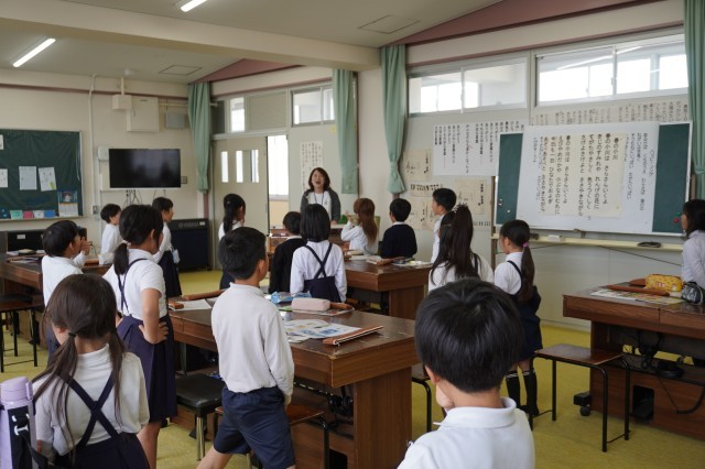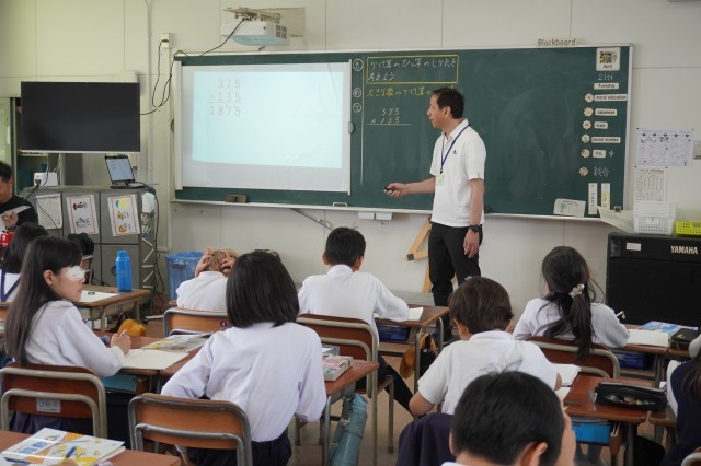4年生の算数では、かけ算のひっ算の仕方を学び、一つ一つていねいに計算する姿が見られました。どの学年も落ち着いて学習に取り組んでいます。