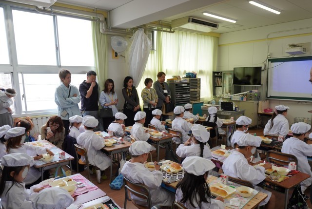 子どもたちは、少し緊張しながらも、保護者の方に見守られ、うれしそうに給食を食べる姿が見られました。
