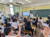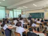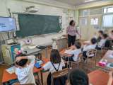 外国語の学習で、本校C-netのロイ先生と自己紹介クイズをして楽しみました。子...