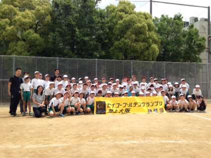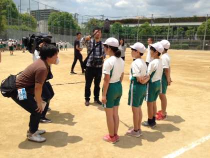 集合写真を撮った後、テレビ局の取材もありました。今日は暑かったのですが、グラウンドの暑さを吹き飛ばすほど元気な子ども達でした。