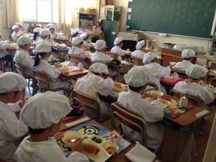 今年度最初の学習参観がありました。1年生は、給食参観です。