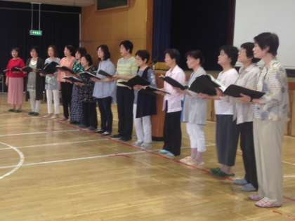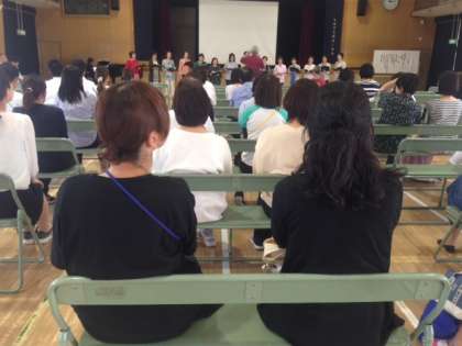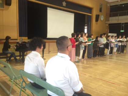 学習参観後は、PTA予算総会に先立ち、「ドルチェ・カント」のコーラス合唱を聞いていただきました。毎週土曜日に音楽室で練習をされています。