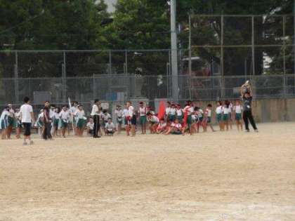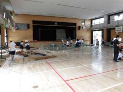 運動会は左専道グラウンドで行うため、テント設置やロープはりは当日の朝にしかできませんが、机やいすの準備、用具の確認等を行いました。