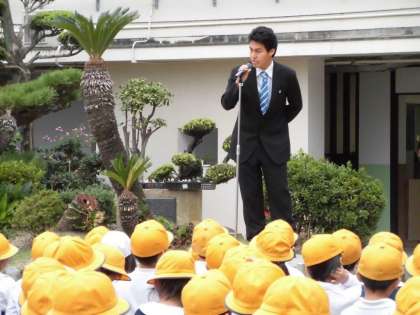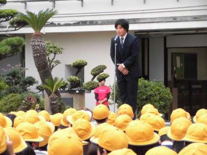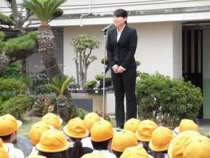 4週間の教育実習が終わり、教育実習生が子ども達にあいさつをしました。