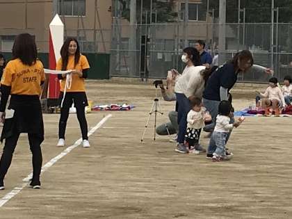 昨日までの天気とはうって変わり、さわやかな秋風の吹く中、みんなが楽しみにしていたPTA親子運動会が開催されました。小学生だけでなく、幼児や保護者、先生も参加してにぎやかな運動会となりました。