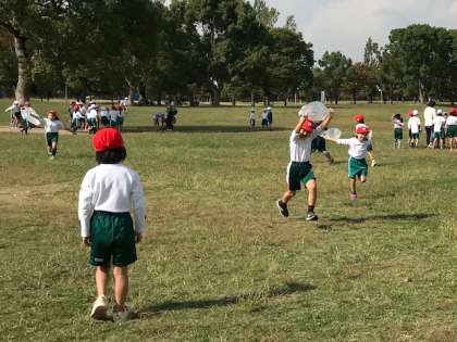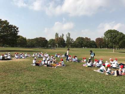 広い公園ですが、たくさんの学校でいっぱいでした。食べた後は、鬼ごっこをしたり、はないちもんめをしたり、どんぐりを拾ったり…。おもいおもいに楽しんだ1日でした。