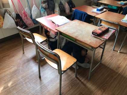 事前指導は各クラスで火曜日にしていますが、今週のいつ、避難訓練を実施するかは事前に子ども達には知らせていませんでした。休み時間ということもあり、担任の先生がいない場所にいた子ども達もたくさんいましたが、落ち着いて避難することができました。