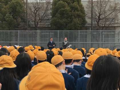 今日は、25年前に阪神淡路大震災が起きた日です。各地でいろいろな取り組みが行われましたが、本校でも、地震とそれに伴って津波が起きたという想定で避難訓練を行いました。