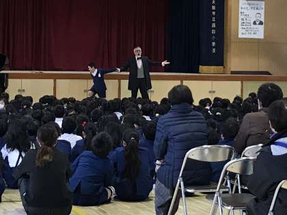 今回は、オペラ歌手の 橘 茂さんとピアノ奏者の 金岡 優子さんに来ていただき、「オペラってなあに?!」と題して、数々のオペラの名曲を歌っていただきました。モーツァルトの「魔笛」や「フィガロの結婚」ビゼーの「カルメン」など、外国の難しそうなオペラも橘さんの手にかかれば、楽しい!おもしろい!