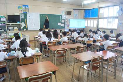 現在の4年生の算数科の学習は、4クラスを5つに分割して1クラスの人数を少なくして学習しています。