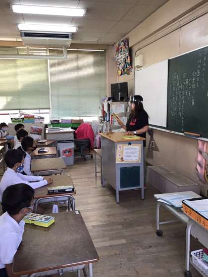 毎週水曜日の朝の時間に、低・中学年を中心に絵本の読み聞かせを行なっています。フェイスシールドを着用するなど、感染症拡大防止に気をつけながら取り組んでくれています。小学生にとって教職員以外の大人と触れ合う機会は、とても大切なことになると思います。