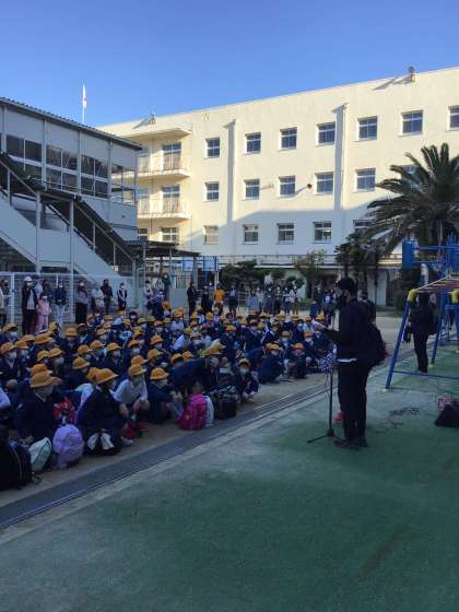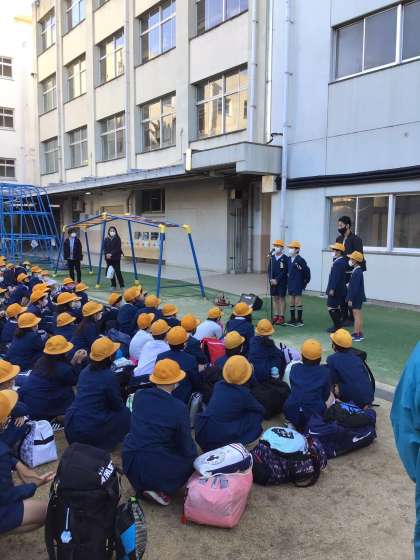 多くの保護者に見送っていただきながら、出発式を行いました。