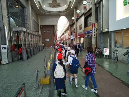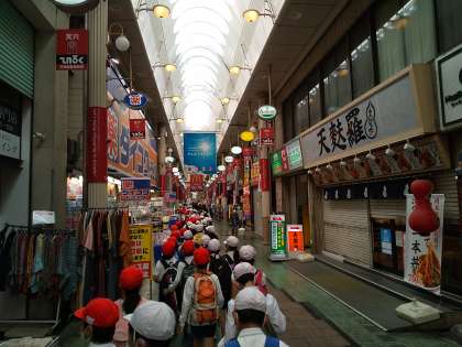 長さが日本一と言われる「天神橋筋商店街」を見学しました。