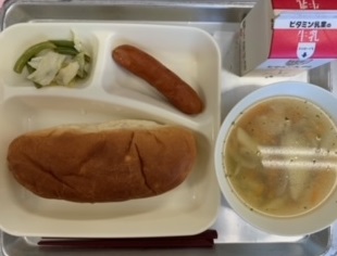 ウインナーソーセージは、オーストリアでのウイーンで最初に作られました。豚肉や牛肉を使って作り、太さは2センチメートルより細いものをいいます。今日の給食では、ゆでたウインナーソーセージにケチャップ味のソースをかけています。