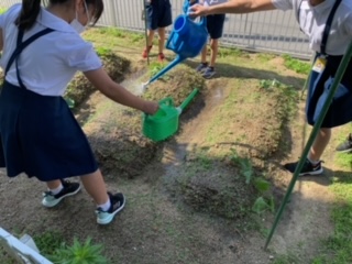 水やりがんばっています!2(4年ひょうたんとヘチマ)