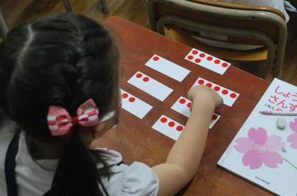 今日の算数の学習は、「7」はいくつといくつ でした。