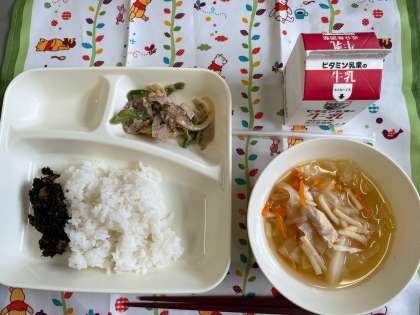 ★ごはん ★牛乳 ★豚肉のごまみそ焼き ★のりのつくだ煮 のりのつくだ煮は、手作りです。