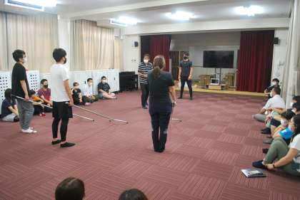 初期対応の仕方や”さすまた”の扱い方など、万一の状況に備えて指導していただきました。