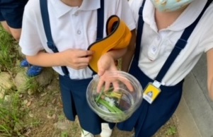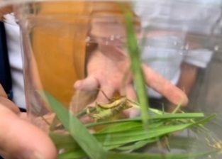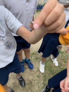 ビオトープには、まだまだ、色々な生き物がいるかも知れません。まだ、あまり行ったことのない人がいたら、一度友だちと一緒にのぞいてみてはどうでしょう。写真上と中はショウリョウバッタ、写真下は、イトトンボです。捕まえた後は、優しく逃がしてあげていました。