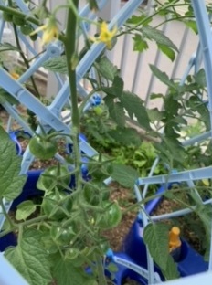 2年生のミニトマトです。毎日のお水やりをがんばっているかいがあって、たくさんの実がなってきました。少し色づき始めているトマトもありました。収穫できる日が楽しみですね。