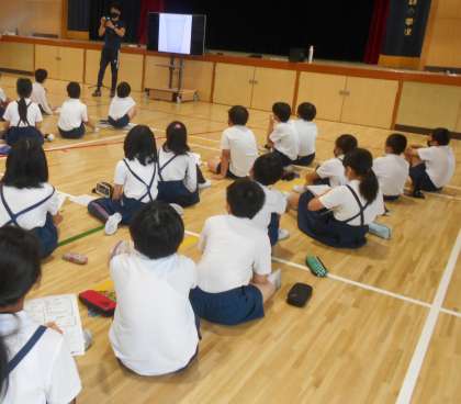 さて、今日は、1時間目に5年生全体で集まり、林間学習実施に向け、活動のルールや持ち物の準備等を確認しました(写真)。