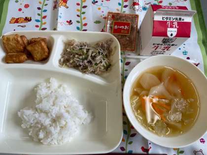 ★ごはん ★牛乳 ★ゴーヤチャンプルー ★すまし汁 ★あつあげのしょうがじょうゆかけ