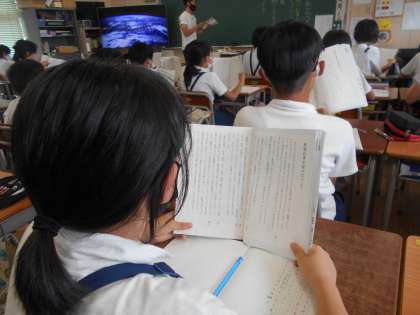 5年生の国語科は、「新聞記事を読み比べよう」の学習をしています。今日の授業では、「教科書の文中に書かれていた3つのメディアとは、何でしたか?」と先生からの質問がありました。初めは、数人の子どもたちだけ手を挙げていましたが、先生が色々と声をかけることで思い返したり、自信をつけたりして挙手する人が増えていました。3つのメディア(新聞・テレビ・インターネット)について、クラスのみんなで普段の生活を振り返りながら楽しく学習を進めていました。