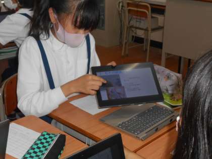5年生 理科 「ヒトのたんじょう」の学習では、自分が関心を持ったことをパワーポイントにまとめグループの人たちに説明する活動がありました。説明を聞いたグループの友だちは、説明がわかりやすかったどうかなどを、後で報告した人に伝えていました。わかりやすく説明するってなかなか難しいですよね。お互いに一生けんめい聞き合う姿がとても良かったです。