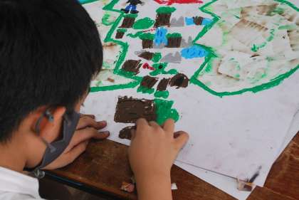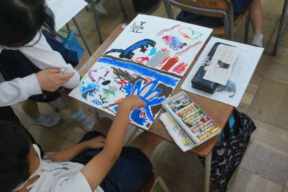 一生懸命塗りこむ子、細かく描き足す子など、絵をどんどん仕上げていっていました。