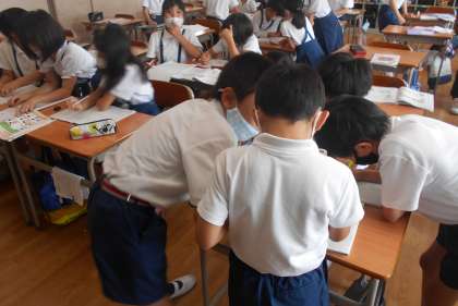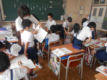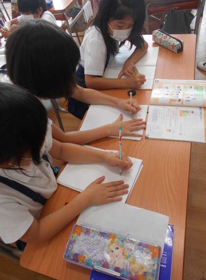 3年生の算数科では、調べたことをグラフや表に整理する学習をしています。今日は、「3年1組の好きなものを調べて整理しよう」ということで、車・スポーツ・花・食べ物などについて、クラスのみんなに尋ねる質問内容を話し合っていました。