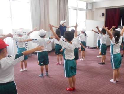 2年生は、ラジオ体操の練習をしていました。先生のお手本を見ながらがんばっていました。他の学年でも、運動会に向けての準備や練習が少しずつスタートしています。