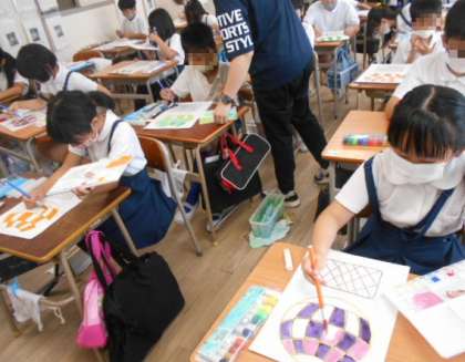 3年生では、図画工作科で「気球に乗って」の絵画の作品に取り組んでいます。パスで描いた絵に、今日は水彩絵の具をのせる活動でした。水加減を難しそうにしていましたが、パスと水彩絵の具のはじく感覚を楽しんでいました。